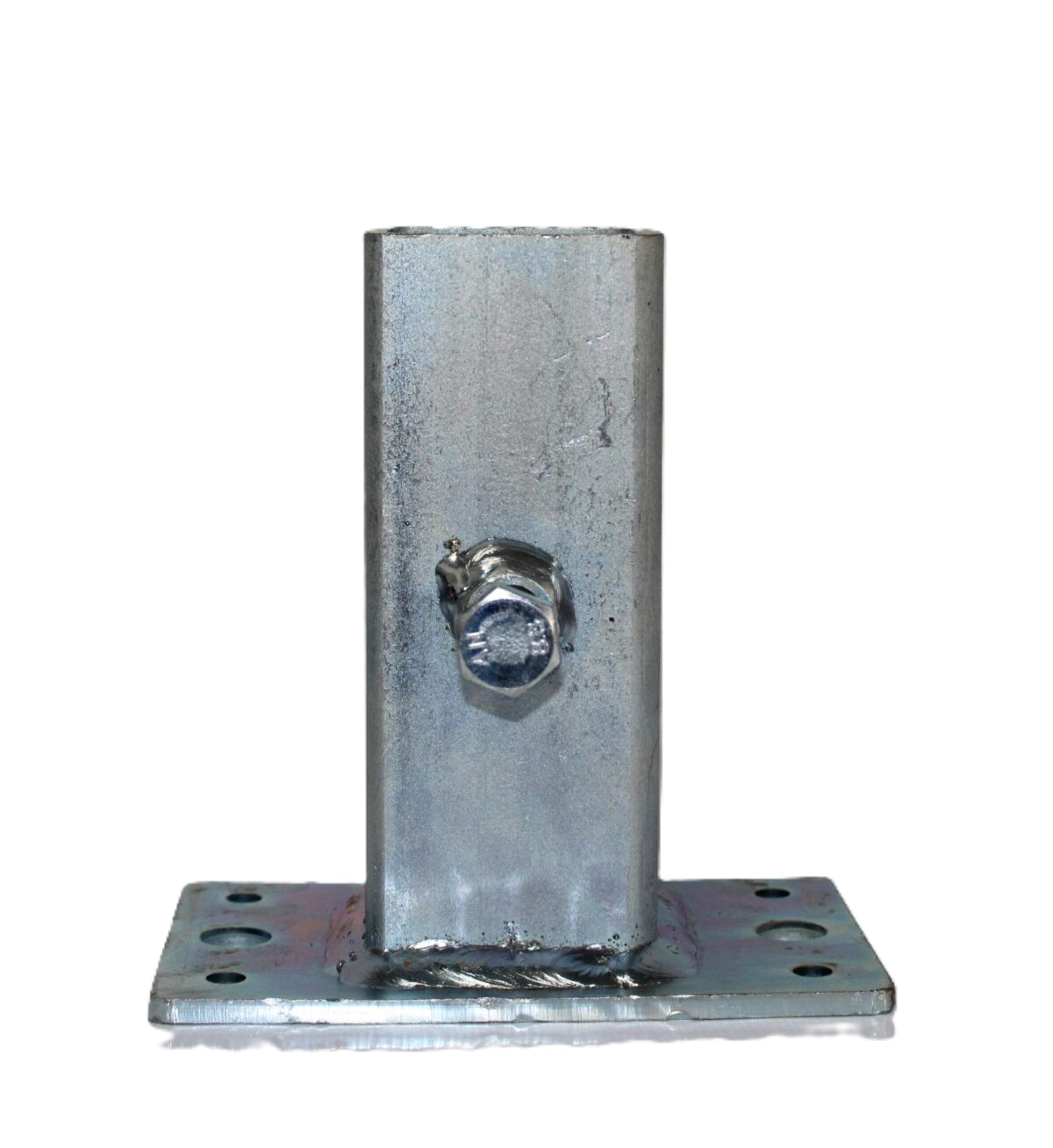 Durable edge protection bracket designed with a mushroom square socket for secure scaffold and construction safety systems. Features an integrated locking bolt for fast installation and reliable hold, ensuring stability and compliance on site. Built from heavy-duty steel for long-lasting performance.